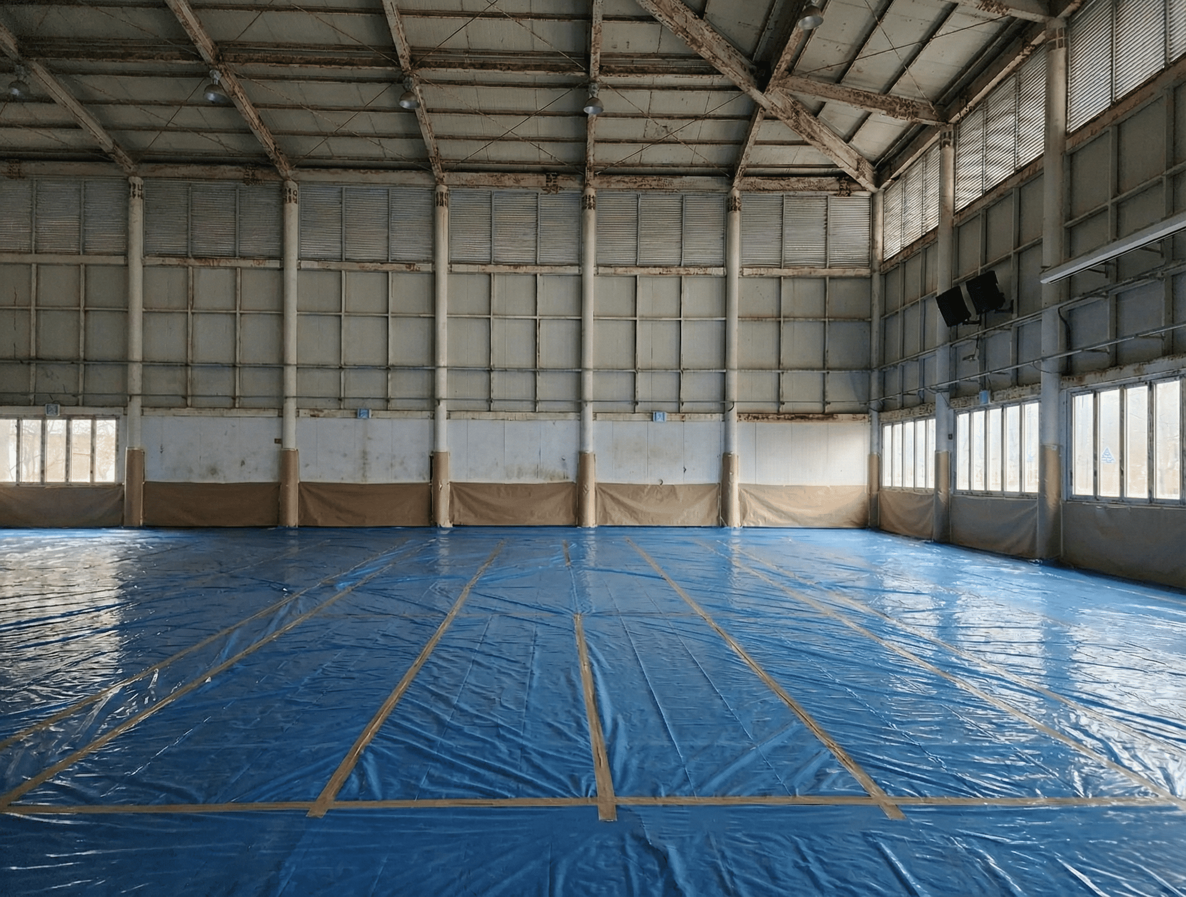 기존 체육관 내부 마감재는 가연성 자재가 포함되어 있어 화재 확산 위험이 존재했습니다. 이를 개선하기 위해 전체적인 리모델링 공사 없이, 기존 마감재 위에 도포하는 것만으로도 불연 성능을 부여할 수 있는 효율적인 솔루션이 필요했습니다.